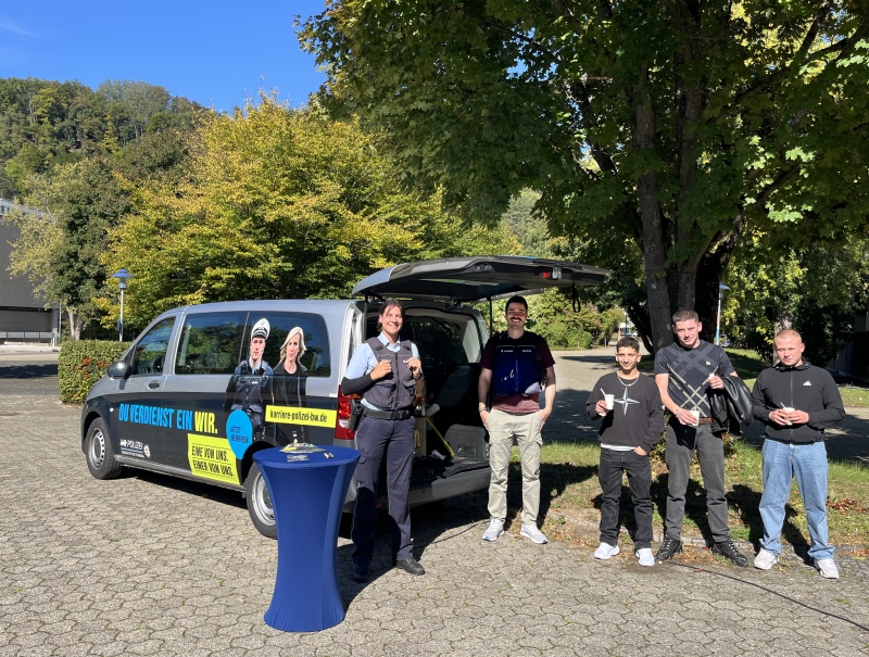 Am Freitag, den 19. September 2025, war der Infobus der Polizei Baden-Württemberg an der Ludwig-Erhard-Schule Mosbach zu Gast. Die Schülerinnen und Schüler nutzten die Gelegenheit, sich direkt bei den Einstellungsberaterinnen und -beratern über Ausbildung, Studium und Praktikumsmöglichkeiten bei der Polizei BW zu informieren. Neben allgemeinen Informationen zum Bewerbungsverfahren erhielten sie wertvolle Einblicke in den Berufsalltag sowie praktische Tipps rund um Einstellungstests und Auswahlverfahren. Viele offene Fragen konnten in persönlichen Gesprächen geklärt werden, sodass die Veranstaltung einen wichtigen Beitrag zur Berufsorientierung leistete.